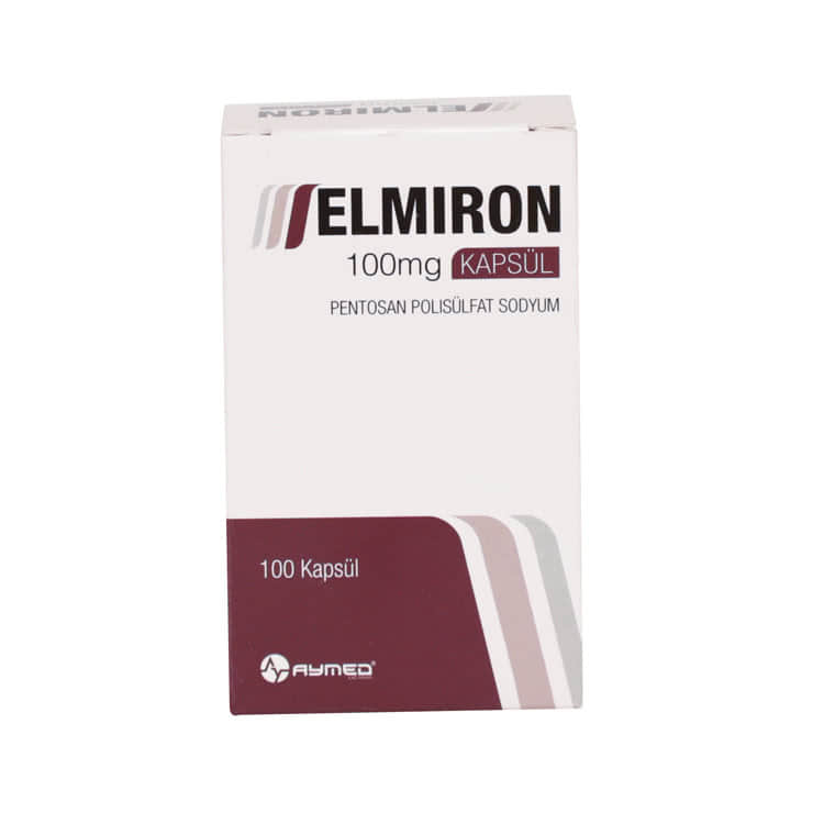Активное вещество препарата Элмирон – полисульфат натрия пентосана. В каждой капсуле содержится 100 мг этого компонента.