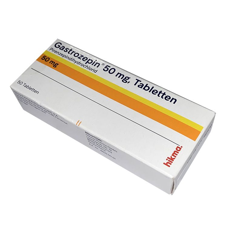 - Активное вещество: пирензепин 50 мг.