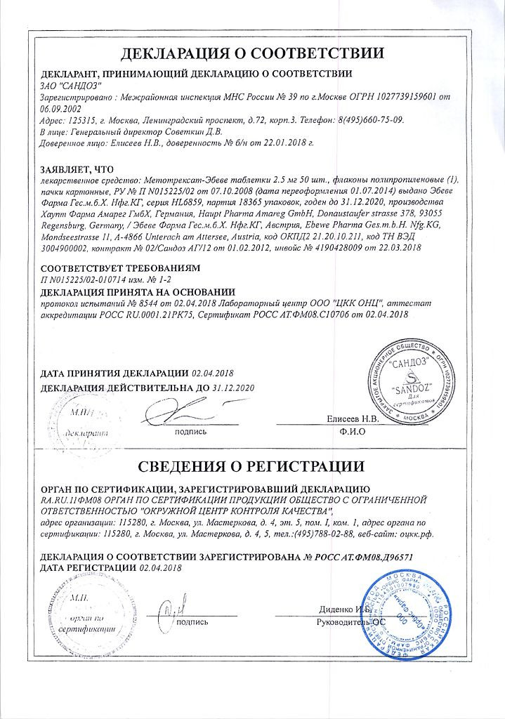 Прежде чем купить Метотрексат в ближайшей аптеке, нужно обязательно проконсультироваться с врачом. Самолечение опасно для Вашего здоровья.