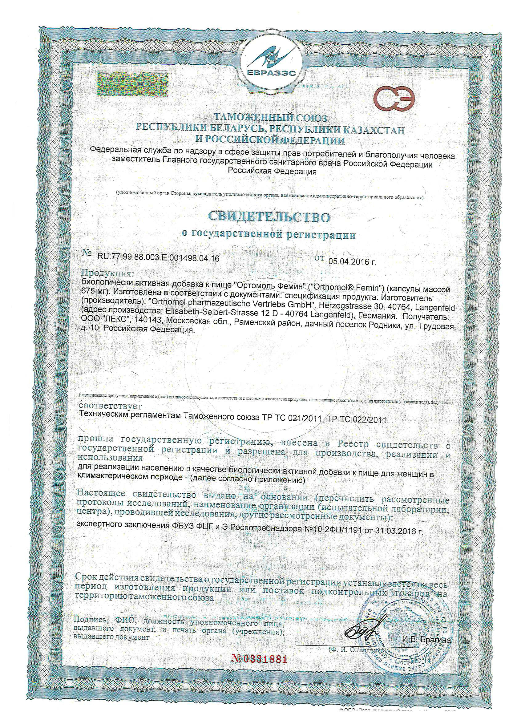 Инструкция Ортомол