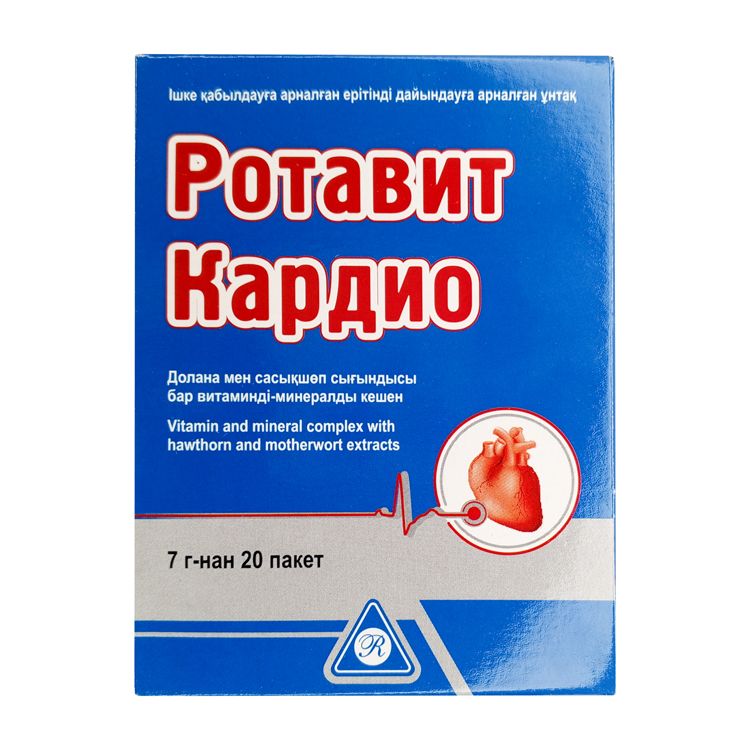 Ротавит Кардио - это витаминный и минеральный комплекс из растительных экстрактов, которые специально подобранны при гипо- и авитаминозах, способствуя тем самым нормальной работе ССС путем: