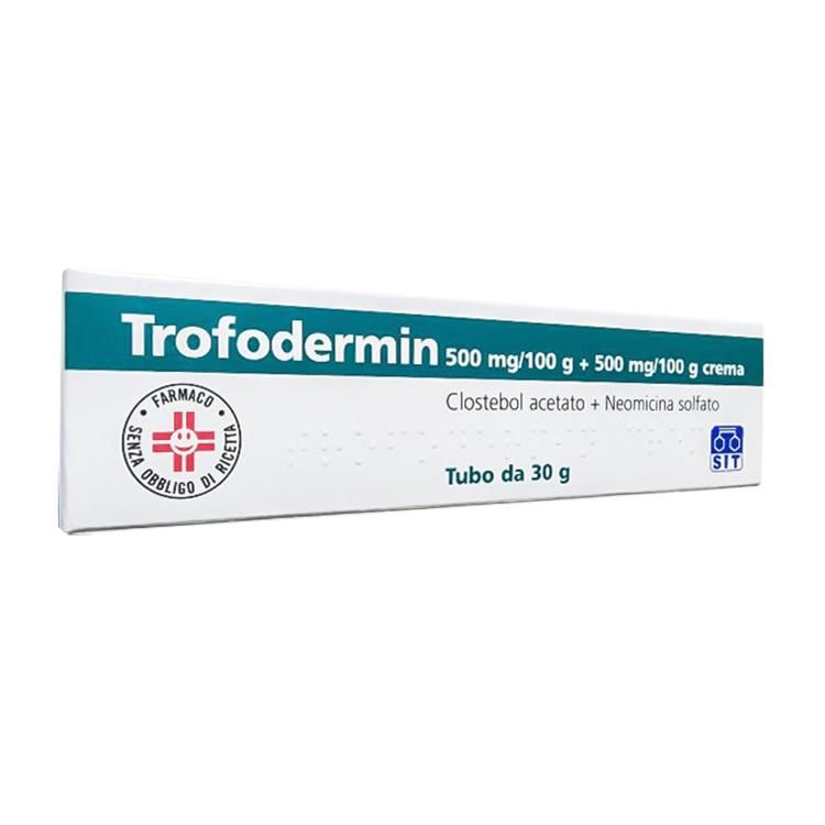 Трофодермин - это дерматологический крем, который наносят местно на кожу при различных типах поражений. Полезные свойства клостебола и неомицина, активных ингредиентов, содержащихся в этом препарате, очень полезны для лечения эрозий, ссадин, мелких язв кожи, таких как варикозное расширение вен, пролежни или легкие травмы, трещины на соске или в заднем проходе, инфицированные раны, небольшие ожоги, сухость, шелушение и радиодерматит.