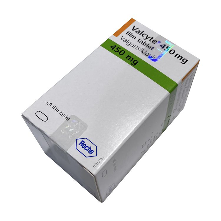 Вальцит поставляется в картонной упаковке с нанесенными маркировками, содержащими название препарата, дозировку (450 мг) и количество таблеток (60 шт). На упаковке также указаны информация о производителе, номер серии и дата истечения срока годности. Таблетки находятся в блистерах, защищающих их от воздействия внешней среды. Упаковка имеет характерную бело-зеленую цветовую гамму с фирменной голографической наклейкой и логотипом производителя "Roche".