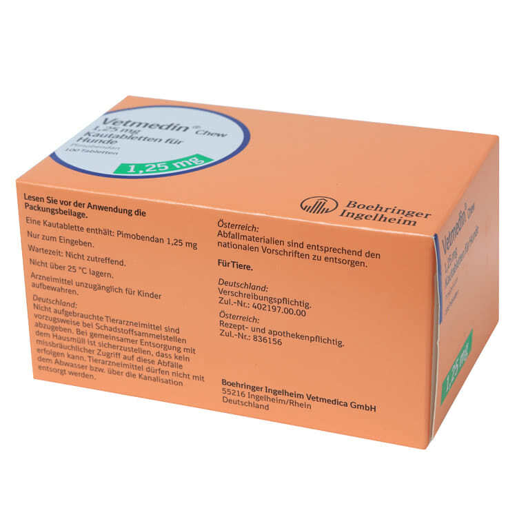 Ветмедин в таблетках применяют в ветеринарной практике для лечения заболеваний сердечно-сосудистой системы у собак. Назначается врачом при наличии у пациента таких симптомов, как асцит, отдышка, кашель, снижение активности. Код АТХ не присвоен. Относится к малоопасным веществам. При исследованиях не выявлено мутагенное, тератогенное, эмбриотоксическое действие.